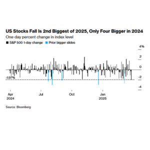 US stocks tumbled to their second-worst day of the year as risk assets were pummeled by renewed concerns a flurry of tariffs will stoke inflation just as signs mount that consumer sentiment and spending are buckling.